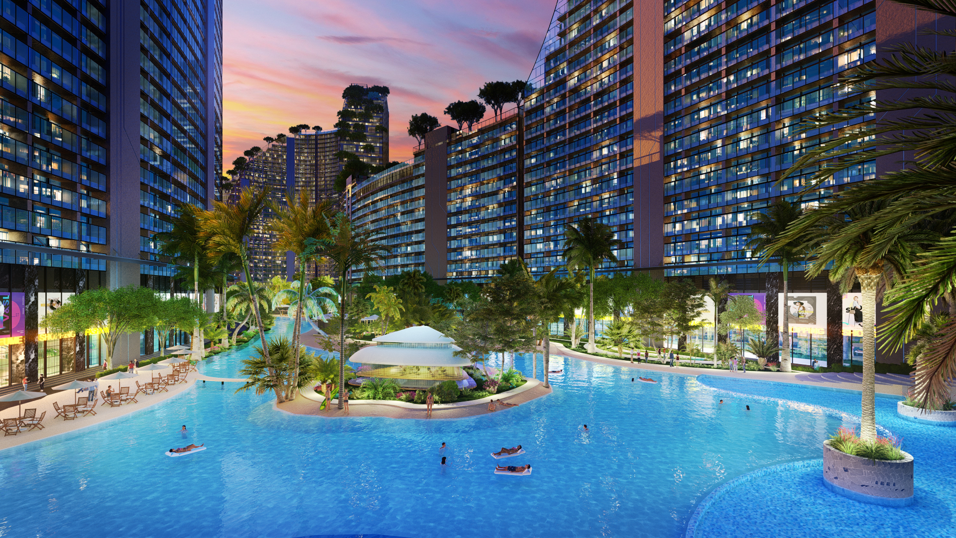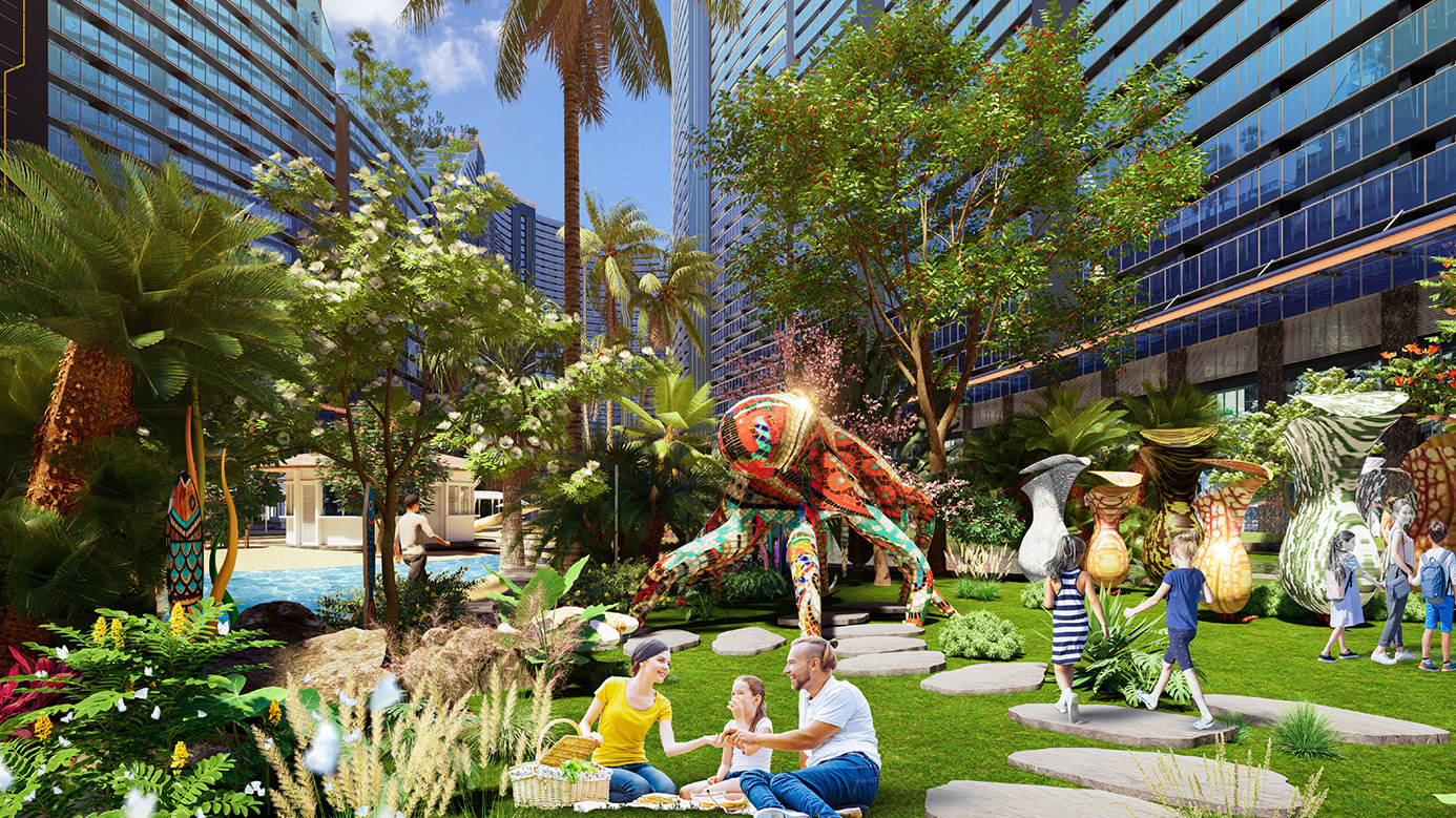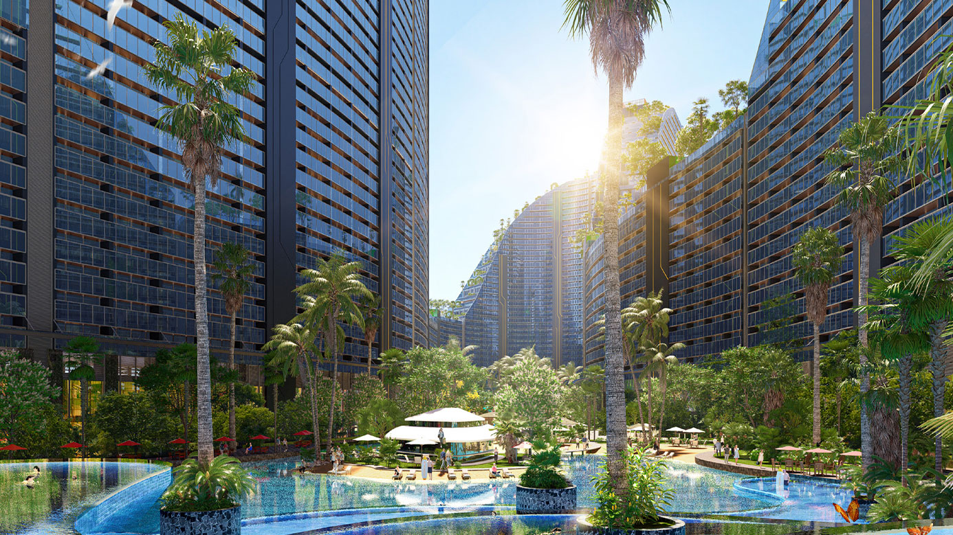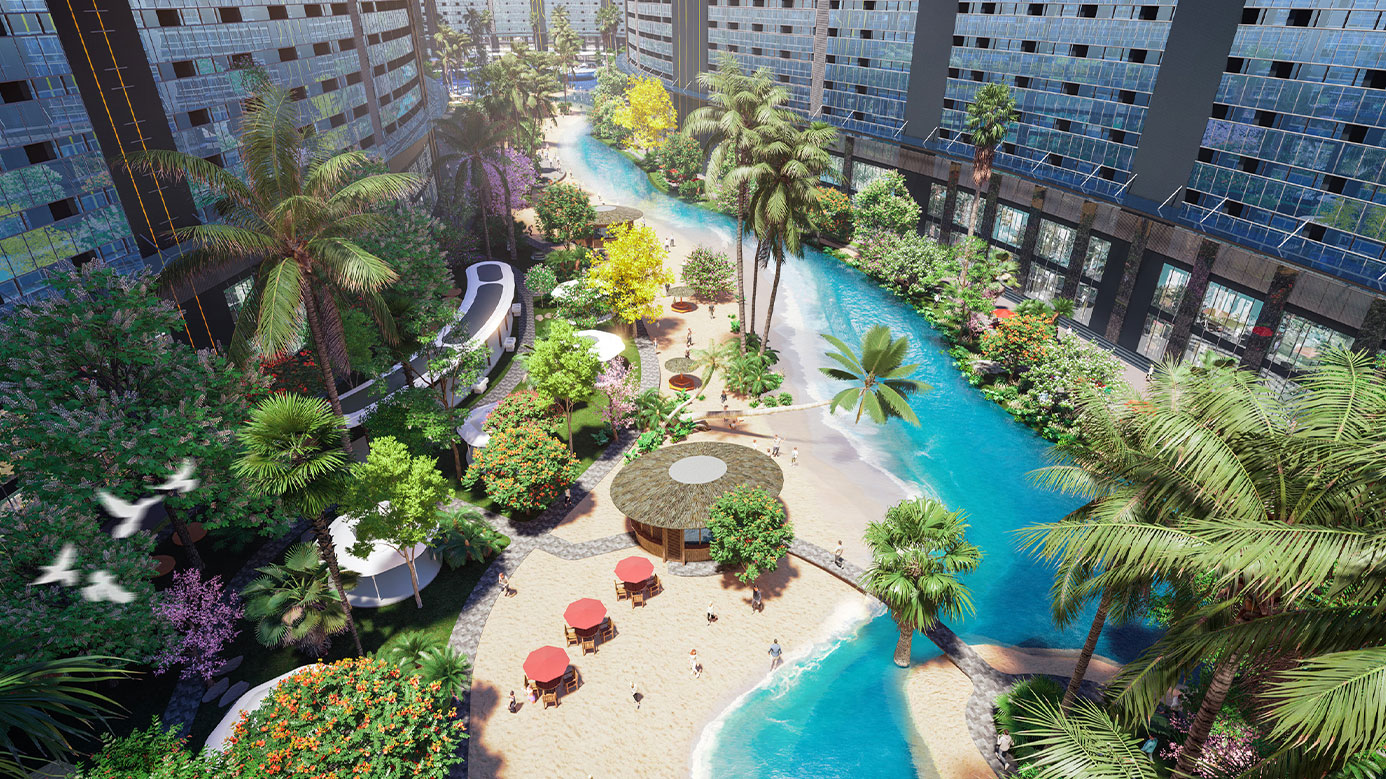 Không chỉ được hưởng lợi từ cảnh quan và môi trường xung quanh dự án, Noble Crystal Riverside còn được thiết kế lõi cảnh quan xanh, nơi cây và nước giao hòa tạo ra một cuộc sống xanh hoàn hảo cho mọi cư dân. Đến Noble Crystal Riverside, bạn như lạc vào một resort 5 sao đúng nghĩa với sông cảnh quan, cầu đi bộ, vườn treo, đường dạo bộ trên không, bể bơi tiêu chuẩn resort; cùng hàng loạt dịch vụ thời thượng như trung tâm thể thao tích hợp beauty salon, chăm sóc sức khỏe, vườn Yoga, khu vui chơi trên cát, sky bar, sân tập golf trên mái...
