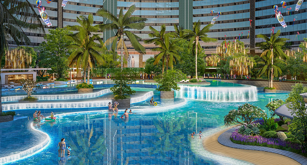 Ngoài các tiện ích làm đẹp, cư dân của tòa tháp Aqua Beauty Resort còn sở hữu gần 100 tiện ích hạng sang trong toàn dự án với: Khu hồ bơi rộng gần 4.000 m2; Tuyến phố ẩm thực – shopping – giải trí quanh dòng sông nhân tạo dài gần 1.000m uốn quanh các tòa tháp; Tổ hợp sky bar và coffee tầng thượng có tổng quy mô 1,100 m2. Trong đó, trung tâm sky bar trên độ cao hơn 100 mét, có quy mô 600 m2, riêng vườn café thiên hà có quy mô 500 m2; Disneyland và vườn cổ tích cho trẻ em (hơn 4.000 m2); Rạp chiếu phim (Hơn 2.000 m2); Khu chơi Bowling lớn bậc nhất TP. HCM lên tới hơn 500 m2; Tiniworld và khu vui chơi cho trẻ em trong nhà gần 2.000 m2; Sân trượt băng gần 1.000 m2…